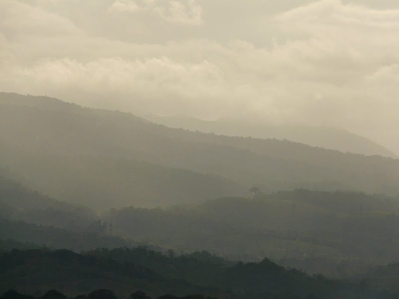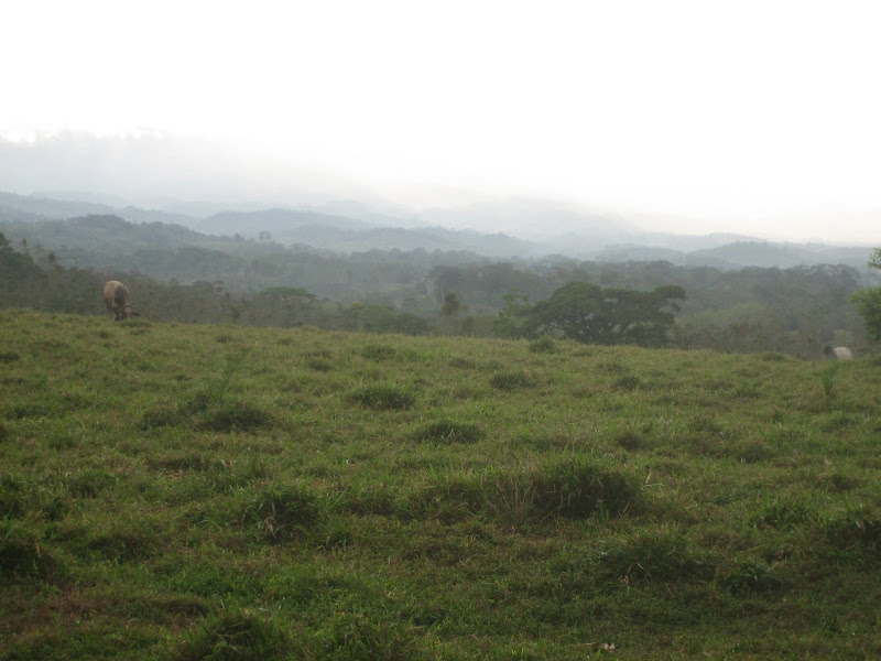 When we left the park, we decided to take a different road to return on than the one we had come on. We had wonderful scenery, and long vistas looking out over the areas where rain was falling. Most of the land was cattle pasture, but in some stretches we came across pineapples. We were growing to love the Costa Rica backroads, the more we got used to the idea of bouncing continuously as we rolled down them. It put the "sport" in "sport utility vehicle."